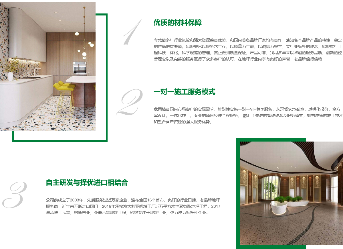 上海勇享地坪是上海勇享建筑裝飾工程有限公司旗下出色也是國(guó)內(nèi)地坪承建商企業(yè)。 本公司成立于2012年,是專業(yè)從事現(xiàn)代化水磨石工業(yè)地坪、商用地坪、國(guó)內(nèi)獨(dú)家創(chuàng)意類地坪、市政公用地坪、混凝土固化(染色)地坪,倉(cāng)庫(kù)地坪設(shè)計(jì),停車場(chǎng)地面設(shè)計(jì),學(xué)校,精品地面設(shè)計(jì),酒店,餐廳各類地面的設(shè)計(jì)與施工,運(yùn)動(dòng)場(chǎng)地及其他地坪,水磨石地板系列的研發(fā)、設(shè)計(jì)、生產(chǎn)、銷售、施工、服務(wù)為一體的高新科技企業(yè)。